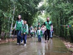 自贡网自贡融媒记者 罗乐 黄啸 10月1日,富顺县永年镇新房村的竹海细雨微蒙、烟波浩渺,一场竹文化旅游暨“竹趣亲子欢乐汇”研学行活动在这里举行。深入竹海腹地,呼吸新鲜空气。亲子徒步是本次文旅活动的重头戏,分为5公里挑战线和2.5公里轻松线。小朋友们手持特制的环线地图,沿着蜿蜒幽静的竹林步道与父母携手前行,打卡竹海、红墙。途中,孩子们在家长的引导下,观察竹子形态,聆听林中鸟鸣,沉浸式地拥抱自然。 徒步过程