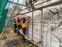 荣县融媒体中心连日来,荣县白塔山公园猴头石景点边坡加固工程正全速推进。施工现场,脚手架沿坡面延展,工人们紧张作业,全力抢抓进度。 边坡加固工程猴头石景点山体边坡基岩出露多,且属于长石石英砂岩,岩体质地较软、强度较低,整体胶结程度较差。受强烈风化及植物根劈作用影响,表层岩体与母岩之间出现“脱壳”现象。目前裂隙已基本贯通,存在发生小规模坍塌甚至整体滑塌的风险,安全隐患较为突出。 为切实消除安全隐患,荣县综合行政执法