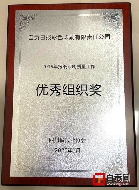 自贡网讯(记者 李小华)日前,四川省报业协会表彰2019年度全省报纸印刷质量先进单位,《自贡日报》印刷质量考核得分排名全省市州党报第三名,承印单位自贡日报彩色印刷有限公司荣获报纸印刷质量最高奖“精品奖”,这是该公司连续五年获此殊荣。同时因质量管理成绩突出,该公司还获得全省报纸印刷质量工作优秀组织奖。