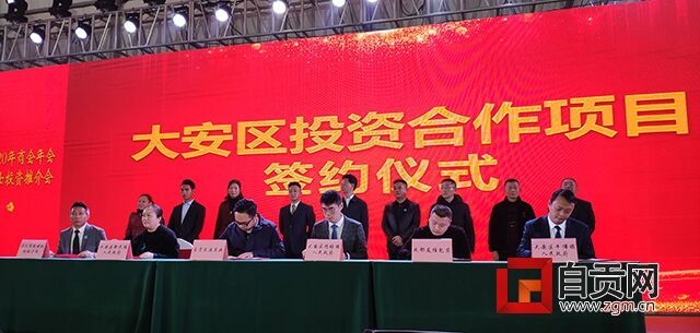 自贡网讯 21日下午,大安区召开商会年会暨返乡人士投资推介会,大安区委、区政府及相关部门负责人与200多名返乡创业人士欢集一堂,共谋发展。会上成功签约盐都星级酒店建设项目、贡山樾商业综合体等6个项目,协议总投资约10亿元。
