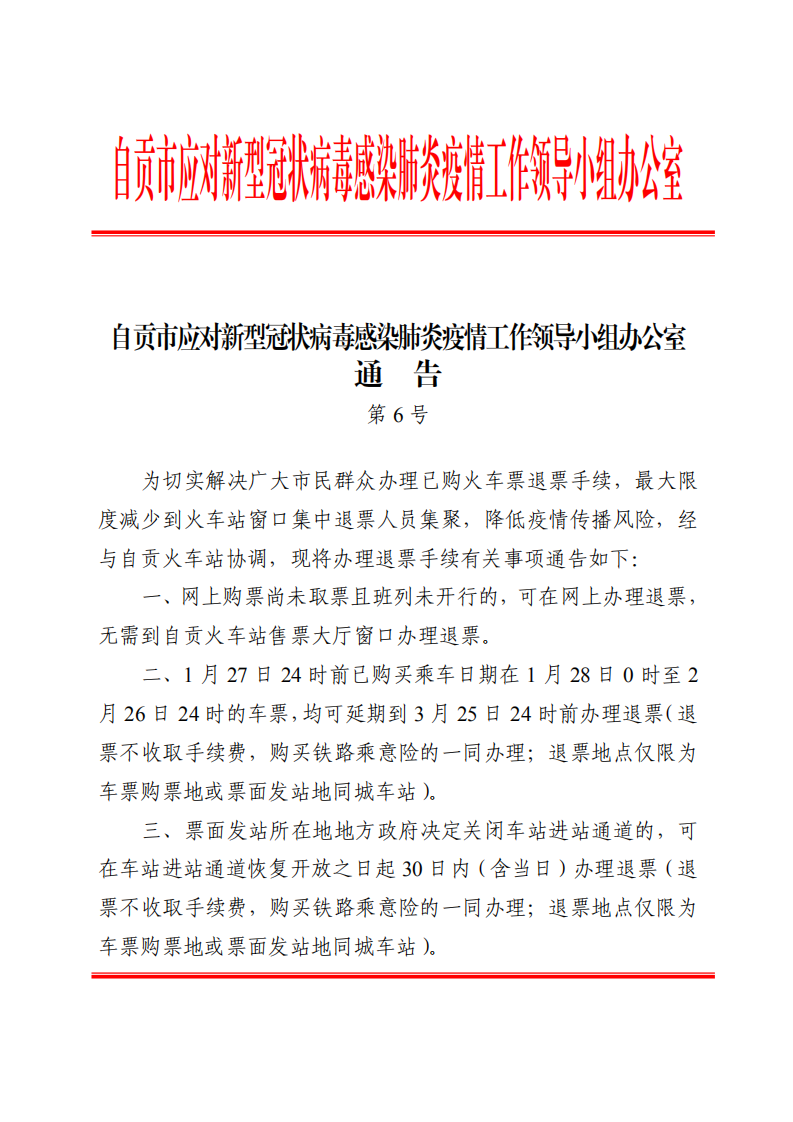 为切实解决广大市民群众办理已购火车票退票手续,最大限度减少到火车站窗口集中退票人员集聚,降低疫情传播风险,经与自贡火车站协调,现将办理退票手续有关事项通告如下: