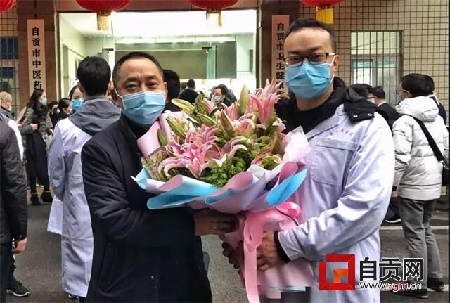 1月28日上午,医疗队在自贡市卫健委集结出发。年迈的父母前来送行,父亲执意帮万科背了最大的一个包。虽然他们一句话没有说,但万科心里明白,父母是不放心的。医院的党委书记程勇特意为他送上了鲜花。