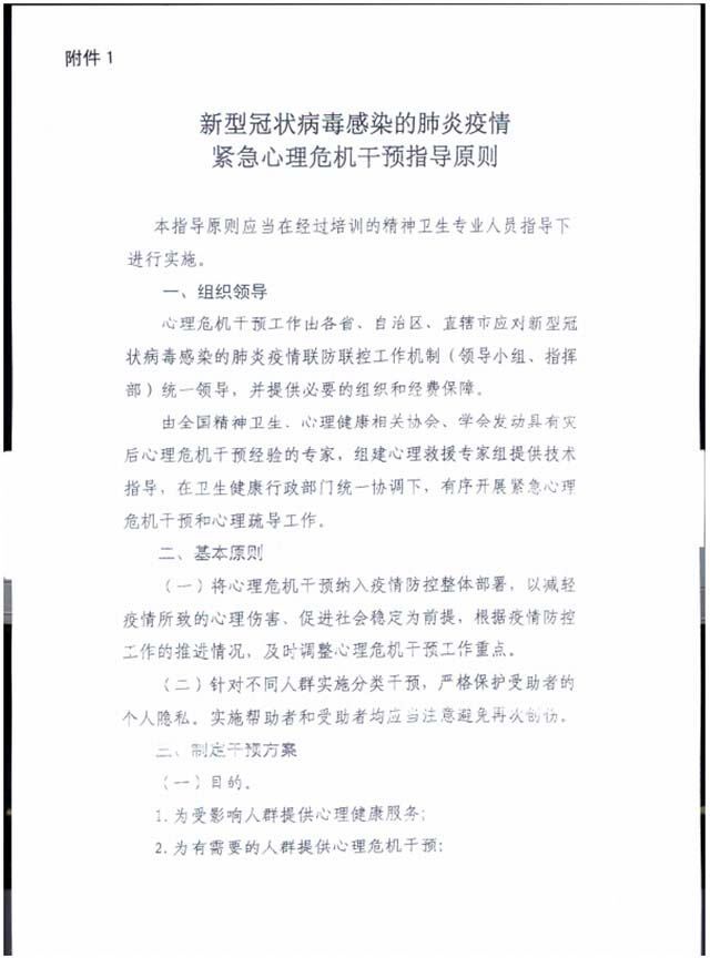附件: 1、新型冠状病毒感染的肺炎疫情紧急心理危机干预指导原则