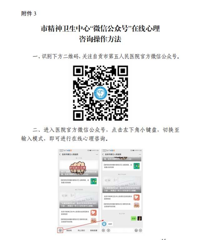 3、自贡市精神卫生中心“微信公众号”在线心理咨询操作方法