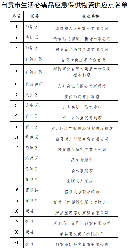 自贡网讯(记者 欧亚非)2月3日,市商务局印发《关于进一步做好应对新型冠状病毒感染的肺炎疫情应急保供点工作的通知》,明确了我市的21个供应点为全市重点生活必需品应急保供点,以进一步保障疫情防控期间群众正常基本生活需要。