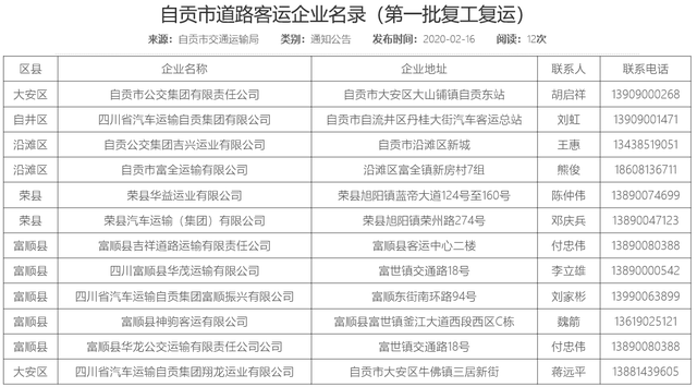 自贡网(记者 马莉莎)日前,记者从市交通运输局获悉,我市部分道路货运企业已经陆续复工复运。同时,市交通局还公布了全市各区县应急运输电话,为我市疫情防控期间的道路运输工作,做好了充分的准备。