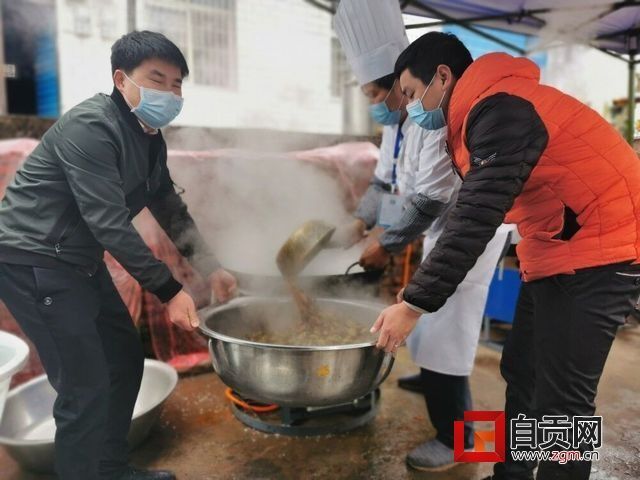 一切准备妥当后,李帮华穿起围腰、戴上白帽,开始大展拳脚。起油锅、下佐料、炒鸭肉,不一会儿,仔姜鸭的香味便令人垂涎欲滴。当天,李帮华准备了三道菜:一份家常仔姜鸭、一份玉米红萝卜、一份凉拌萝卜丝,分装成170余份分送到富顺县东湖街道辖区百余个防控宣传卡点。