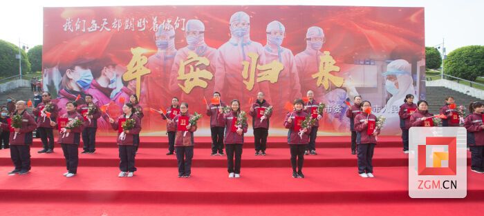台上,“你的脸,我的眼,梦里相见;花前月,灯下影,你何时回还……”一首应景的《盼春归》唱不尽父老乡亲们的期许与等待;台下,“向白衣天使致敬”“鲜花献给最美的你”“英雄凯旋,欢迎回家”一个个红色横幅和标语,写不尽家人与朋友的自豪与骄傲。