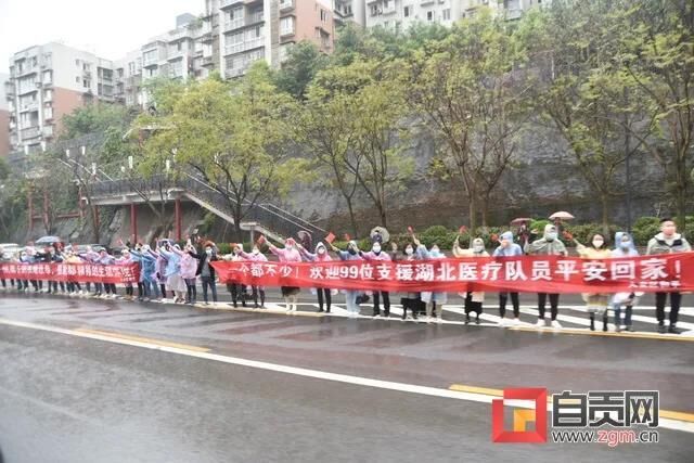 白衣执甲,慷慨赴荆楚;春暖花开,荣耀归故里。4月3日下午,虽然下着蒙蒙细雨,但在蓉遵高速自贡出口,由百余辆志愿者、出租车、热心群众组成的车队早已经提前在此等候,随着搭载79名援湖北医疗队队员的车队抵达高速路出口,迎接英雄回家的现场沸腾了。