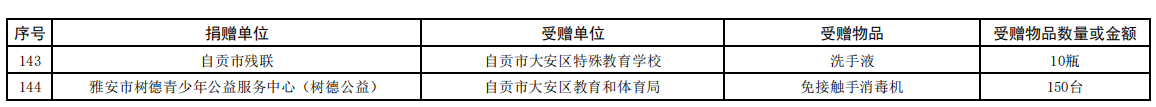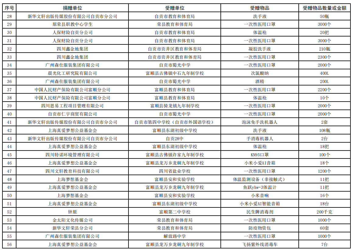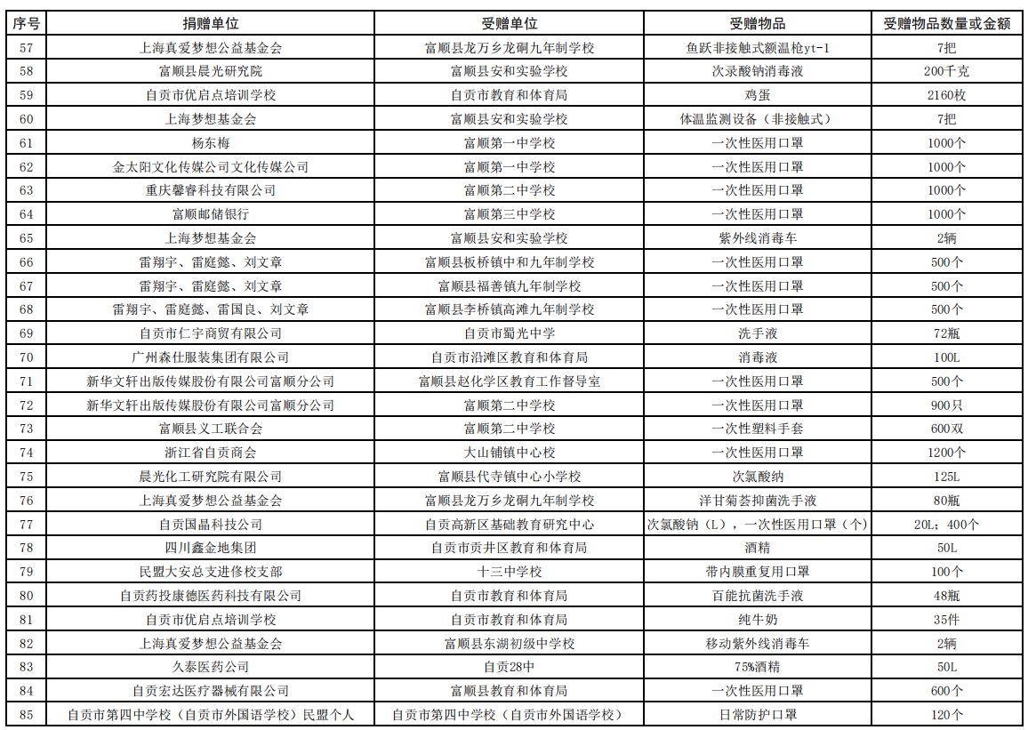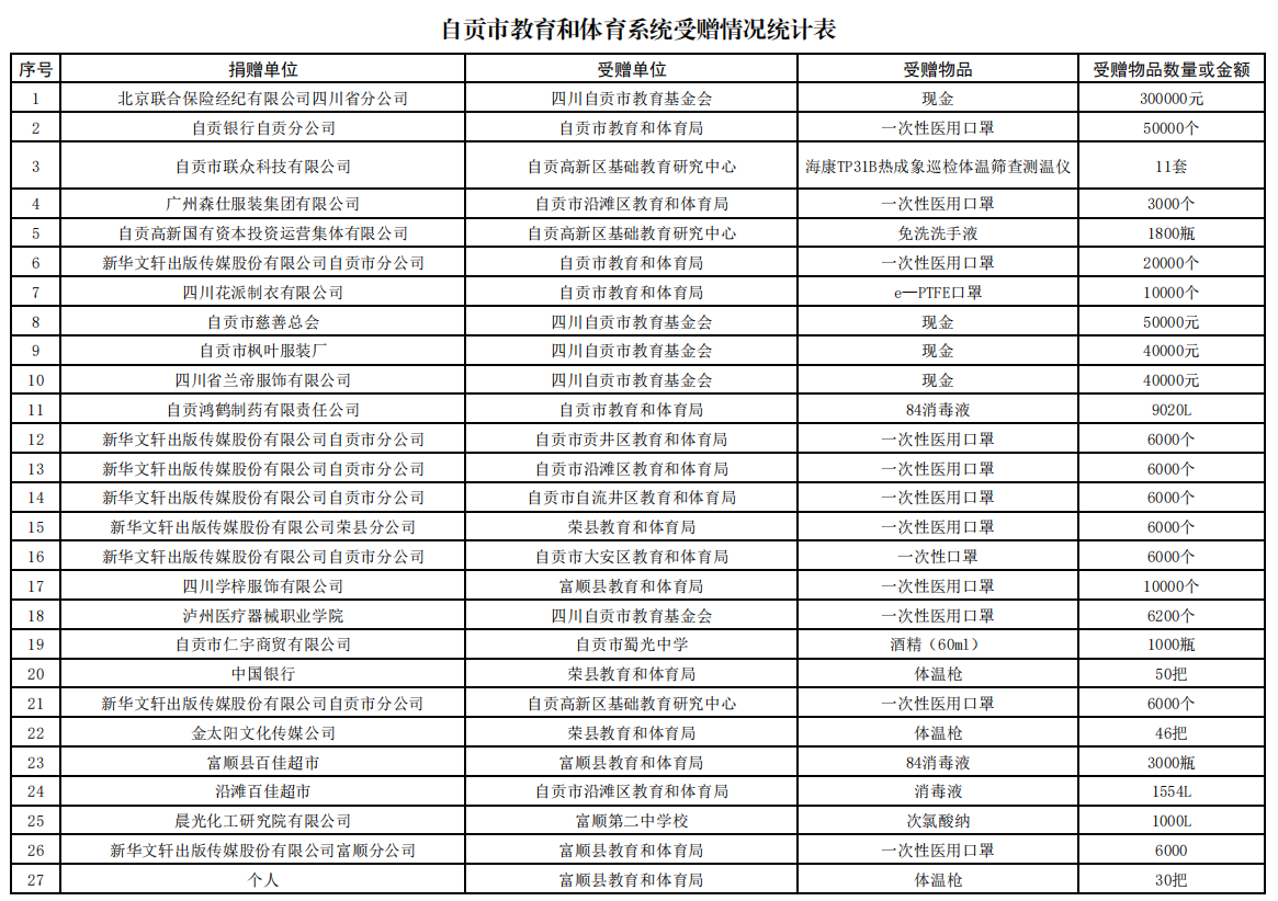 “新冠”无情,人间有爱。在全市教育体育系统抗击疫情的关键时刻,市委市政府积极协调相关企业,确保全市师生基本防护。广大爱心企业、单位和爱心人士慷慨解囊,以善行担起守望相助的社会责任,展现了我们中华民族“一方有难、八方支援”的大爱精神。截至4月24日,全市教育体育系统收到来自社会各界144笔爱心捐赠(具体明细见后)。每一笔捐赠都代表着捐赠人淳朴的爱心,代表着社会各界战胜疫情的坚定决心,是你们让这个“冬天”不再寒冷,让盐都校园“疫散花开”。遵照捐赠意愿和疫情防控需要,我们不负重托信任,将每一分捐赠资金、每一件捐赠物资、每一片爱心传递到了广大莘莘学子、辛勤付出的教职员工和防疫工作者。同时,主动接受审计,依法进行公开,真诚欢迎社会监督。