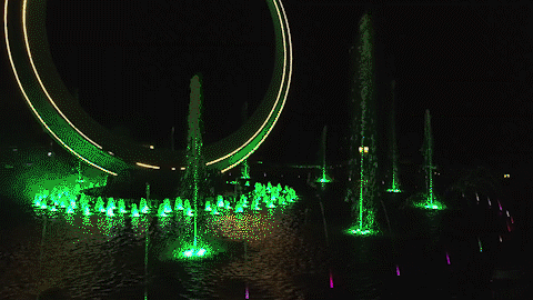 到了晚上,就可以看美轮美奂的音乐喷泉了。