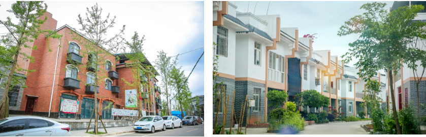 这里有蓝天、青山、小桥、流水,青砖、黛瓦,还有家家户户墙上那一抹粉红桃花...整个荣边仿佛就是一副中国水彩画!