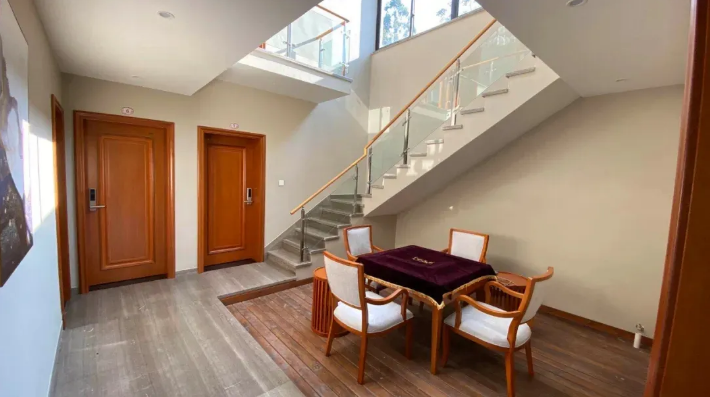 在【尖山艺术小镇】有一家古朴幽静的民宿酒店,这里四周群山环绕、山幽谷深、空气清新、莺莺鸟语萦绕耳畔。推窗而望,便可享受这山水田园风光。身处这般境地,不由让人呤起:繁华尽处,寻一处无人山谷,建一木制小屋,铺一青石小路,与你晨钟暮鼓,安之若素。