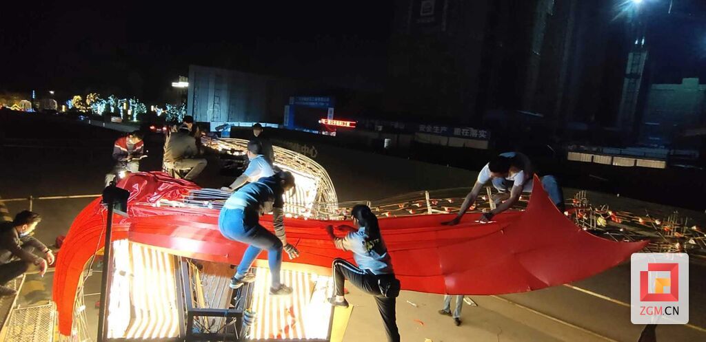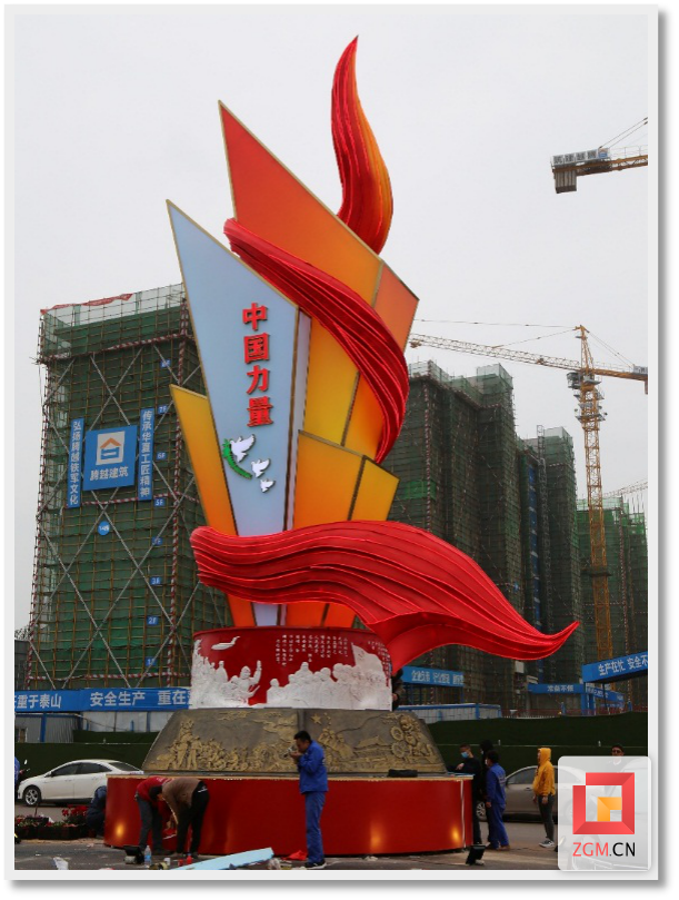 《中国力量》灯组涵盖的“六大力量”,演绎为六块交错、斜向穿插的三角体,给人们以强大的力量感、坚毅感、运动感,富有强烈的冲击力;主体上自下而上飘逸升腾的红色飘带,是旗帜化的中国共产党的象征,寓意全国人民在党的领导下,团结一致形成强大的“力量”;口含橄榄枝的和平鸽,象征我们努力构建人类命运共同体,实现世界长久和平的博大胸怀及目标。(罗蜀远)