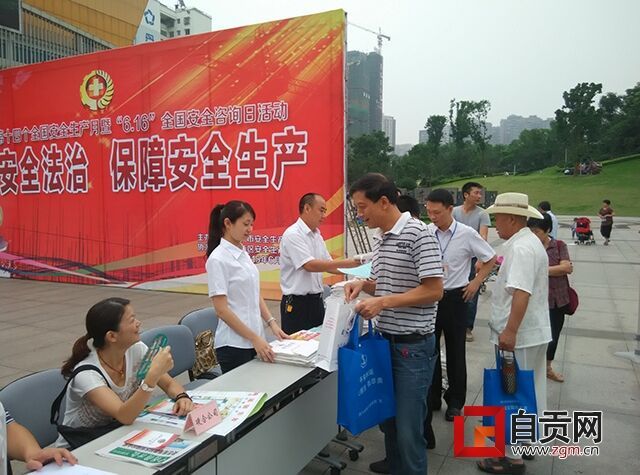 当天,各区县也以不同方式在当地举行形式多样的宣传活动,自流井区安委会组织区安委会成员单位走上街头,通过摆放宣传展板、散发宣传资料等方式向过往群众广泛宣传安全生产知识,并现场接受群众安全方面的咨询,耐心地对群众安全方面的疑惑进行讲解。
