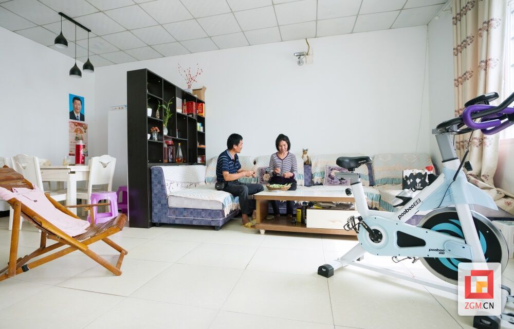 在父女俩身后,镶嵌灰白相间磁砖外墙的房屋,是他们精心营造的温馨之家。吴宗友和三个孩子将这套125平米的居室打理得井井有条,干净敞亮。家里用上了WIFI、投影仪和健身器,电冰箱、洗衣机、空调、热水器等家电一应俱全。