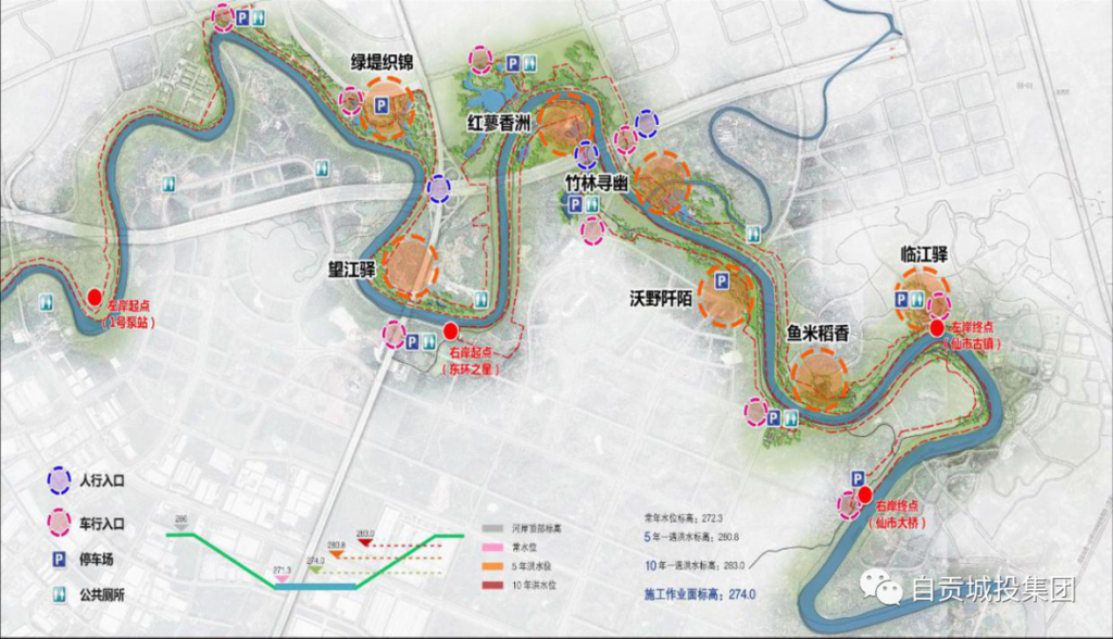 作为未来自贡主要发展轴线,釜溪河生态文化长廊将承载城市发展的无限空间。沿河两岸,一桥飞架南北,天堑变通途不仅成为区域重要的交通基础设施也打通了经济发展的“经脉”。