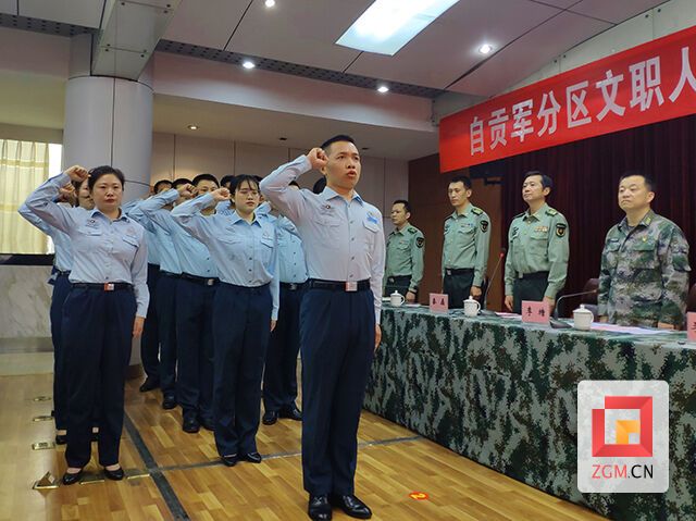 自贡网讯(李小华 记者 曾鹏程)5月14日上午,自贡军分区举行文职人员授装暨宣誓仪式。市委常委、自贡军分区司令员秦磊宣读文职人员任职命令。自贡军分区政委李塘出席仪式。