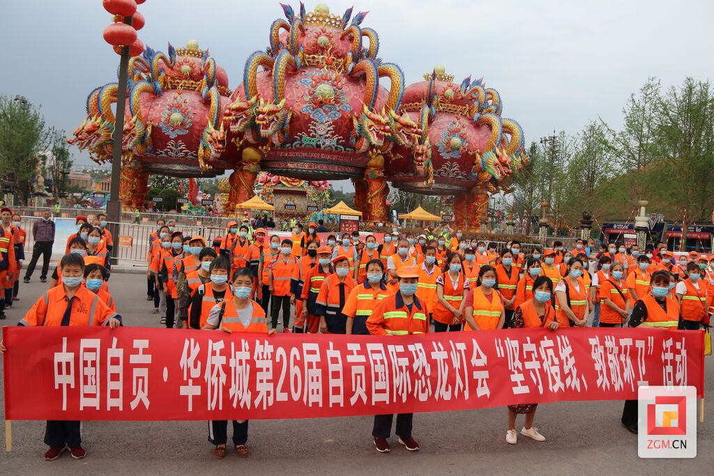 自贡网讯(记者 周姝)披星戴月归,晴天一身灰,雨天一身泥,环卫工人用他们勤劳的双手,为城市增添舒适和愉悦,为我市创建全国文明城市贡献力量。5月28日,“坚守‘疫’线 致敬环卫”市城市管理行政执法局环卫公益日活动在中华彩灯大世界举行,邀请3200多名城市“美容师”观赏中国自贡·华侨城第26届自贡国际恐龙灯会。