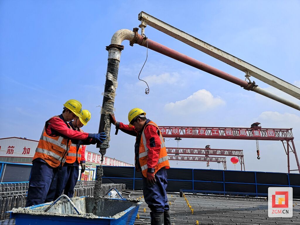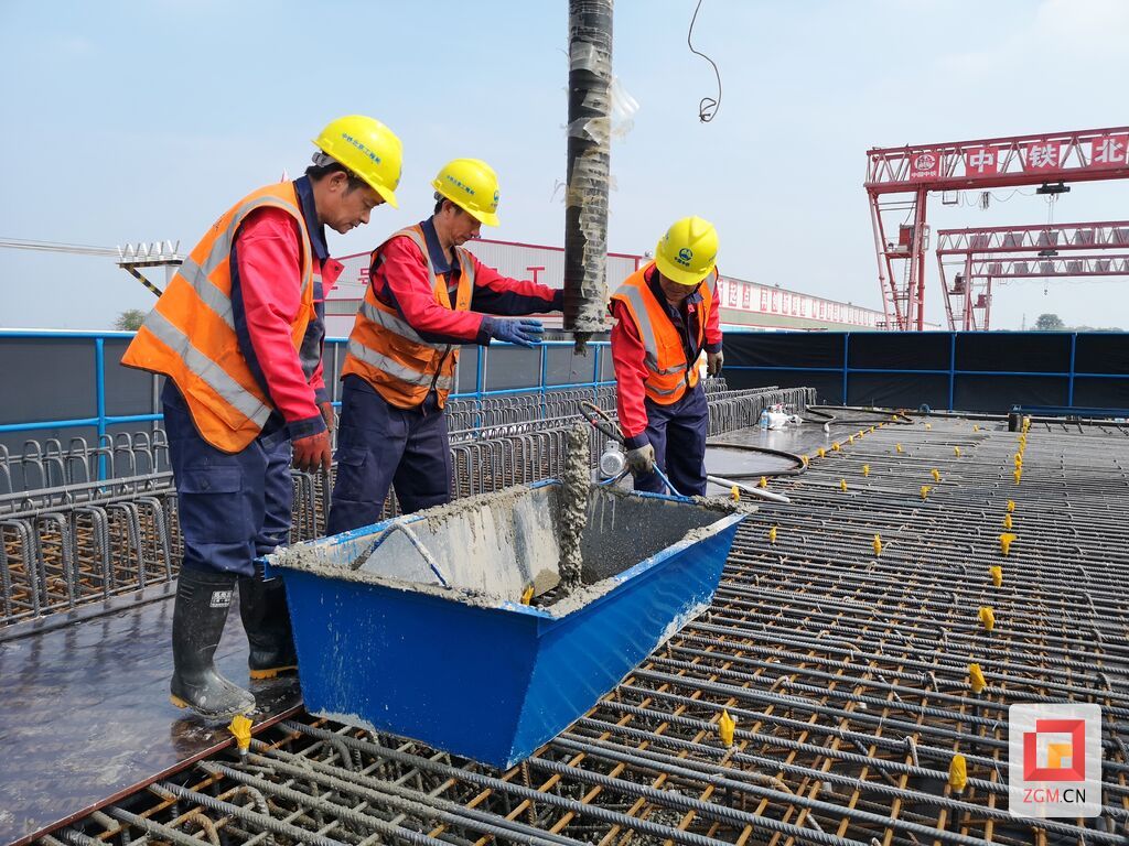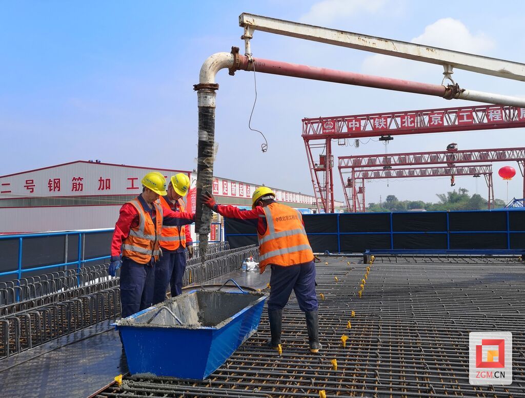 在邓关制梁场,50余名工人正紧张而有序地安装调式现场浇筑区域的辅助设备,两台半径16米的布料机、近10辆混凝土罐车全部到达指定区域。据场长朱瑞强介绍,中铁北京工程局自宜铁路项目邓关制梁场占地170余亩,主要承担川南城际铁路自贡至宜宾段站前工程1标内577孔双线简支梁的预制、架设施工任务。截至6月15日,自宜铁路项目在做好疫情防控基础上复产后,完成产值2.47亿元,实现了防疫情、保增长、稳预期的既定目标。