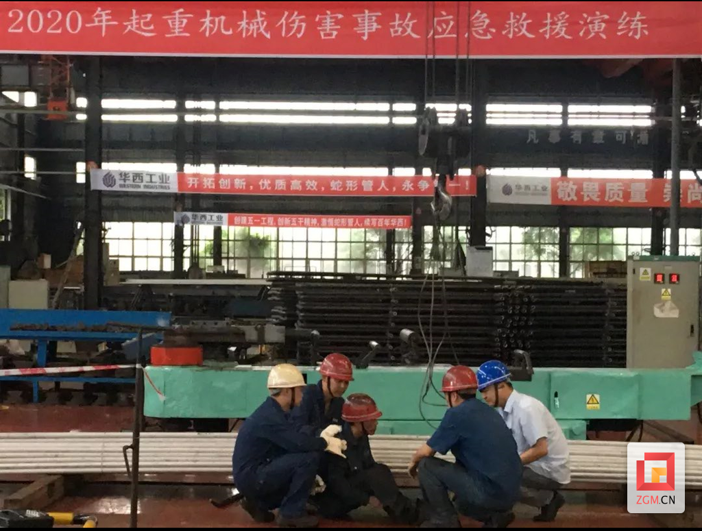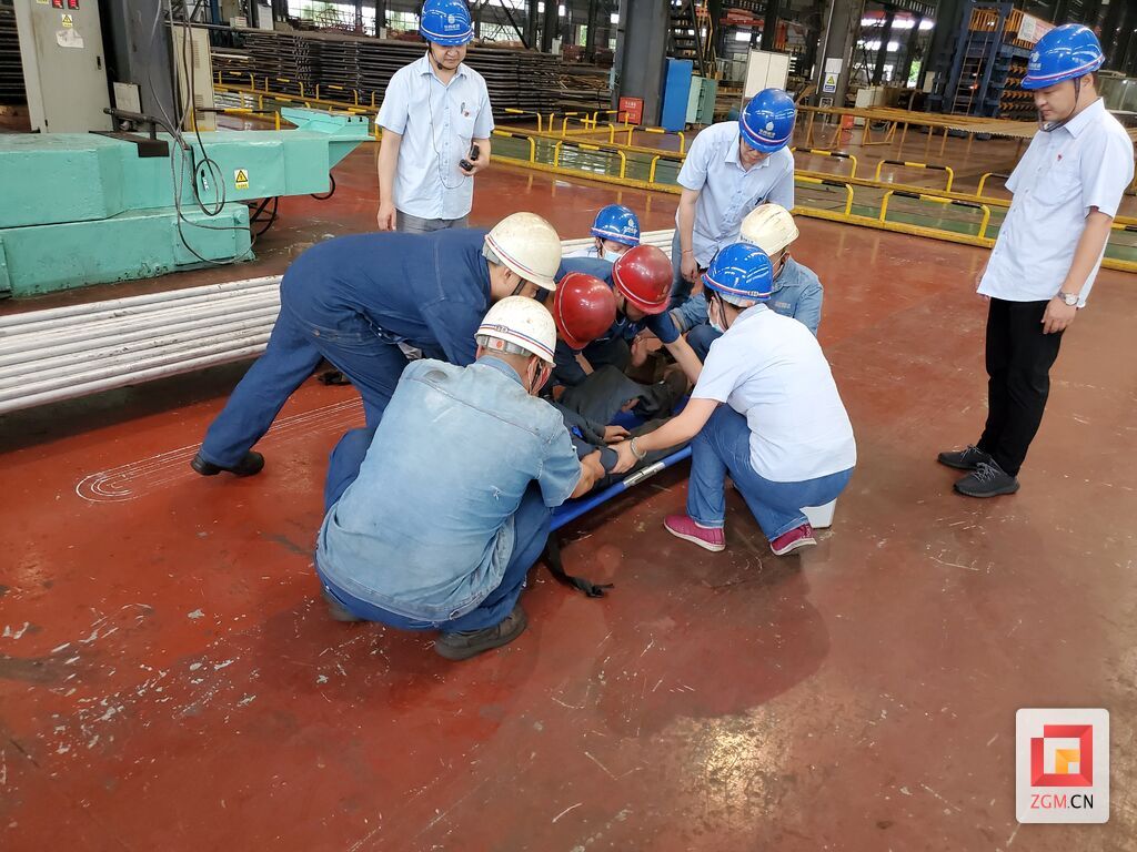 自贡网讯(记者 欧亚非)6月17日下午4时许,随着一声铃响,华西能源工业锅炉股份有限公司蛇形管分厂10t单梁行车徐徐启动。“哎哟”,没想到正在行车吊运下料时,发生了钢丝绳断裂,当场砸到下方起吊作业人员,导致该员工腿部压伤。“立即紧急启动应急预案!”……这是自贡市2020年特种设备安全应急演练现场的一幕。当天,市市场监管局联合华西能源工业锅炉股份有限公司在生产现场开展了此次演练。