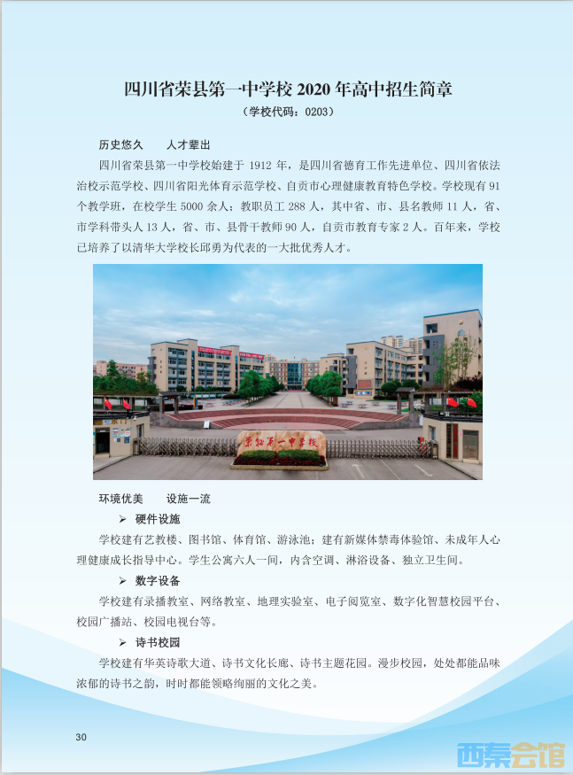 四川省荣县第一中学校2020年高中招生简章