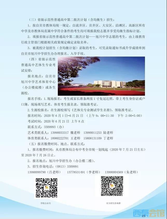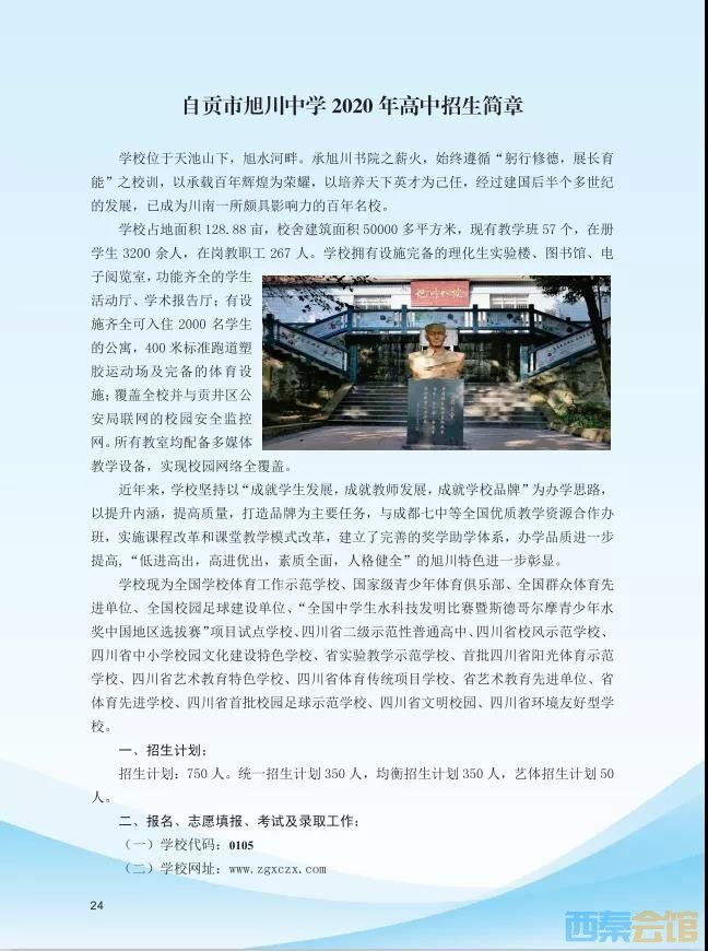 自贡市旭川中学2020年高中招生简章
