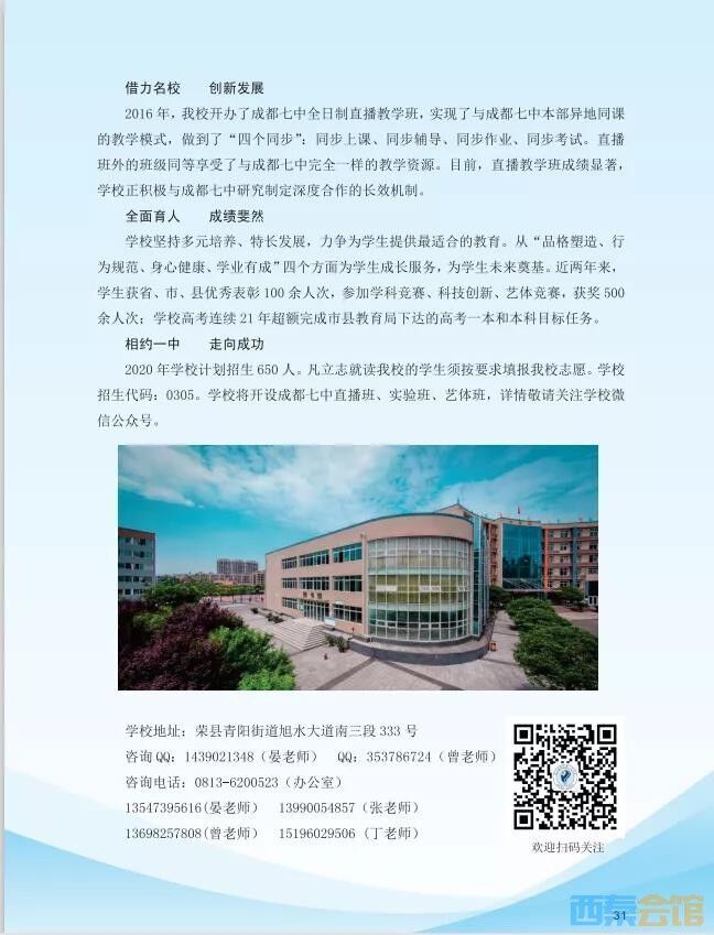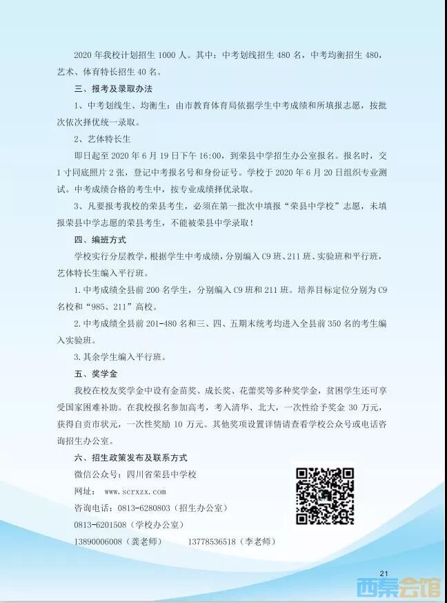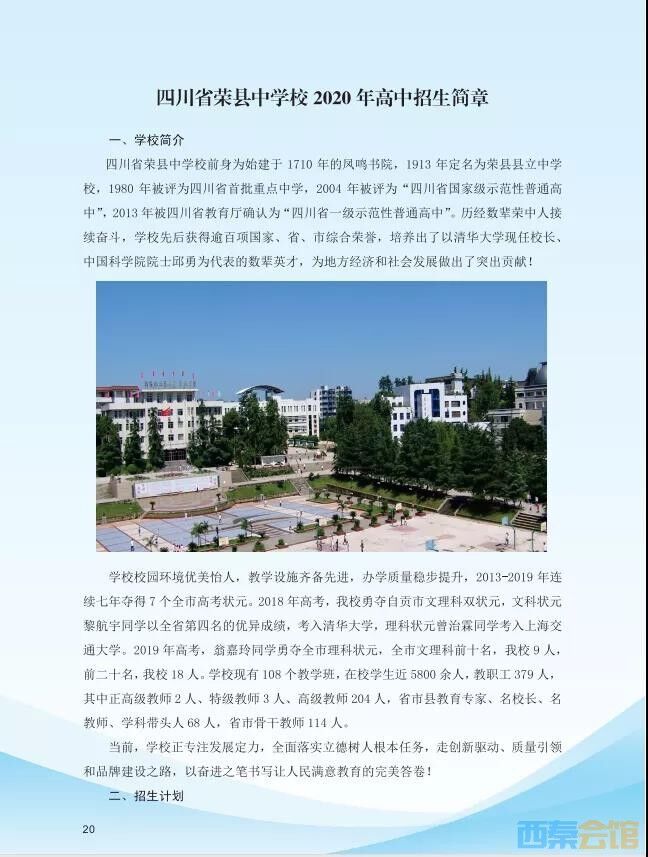 四川省荣县中学校2020年高中招生简章