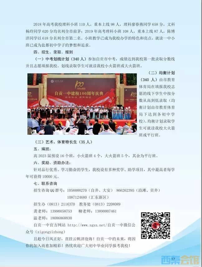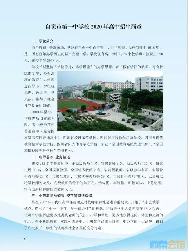 自贡市第一中学校2020年高中招生简章