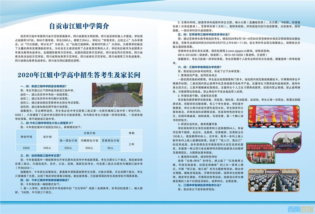 自贡市江姐中学2020年高中招生简章