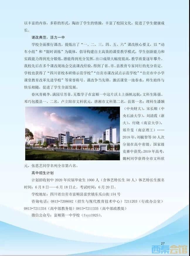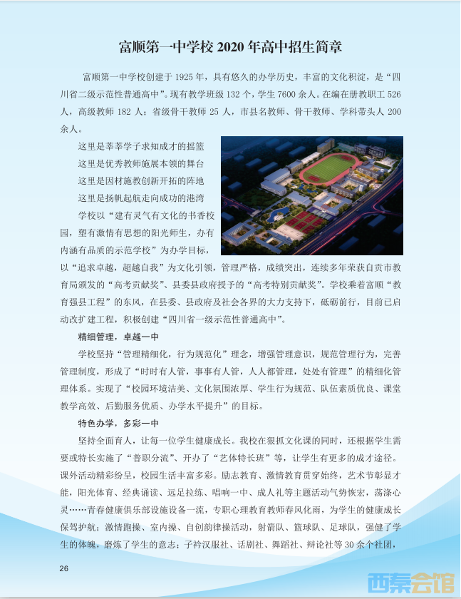富顺第一中学校2020年高中招生简章
