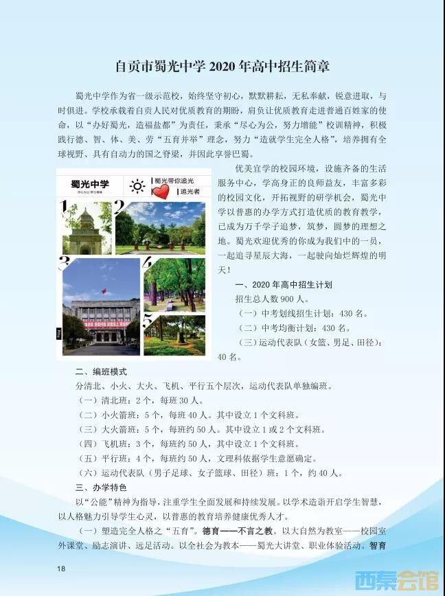自贡市蜀光中学2020年高中招生简章