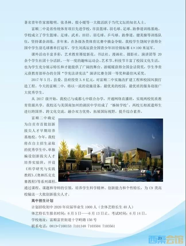 富顺县第二中学校2020年高中招生简章