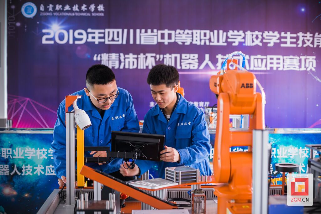 图:自贡职业技术学校学生参加机器人技术应用赛