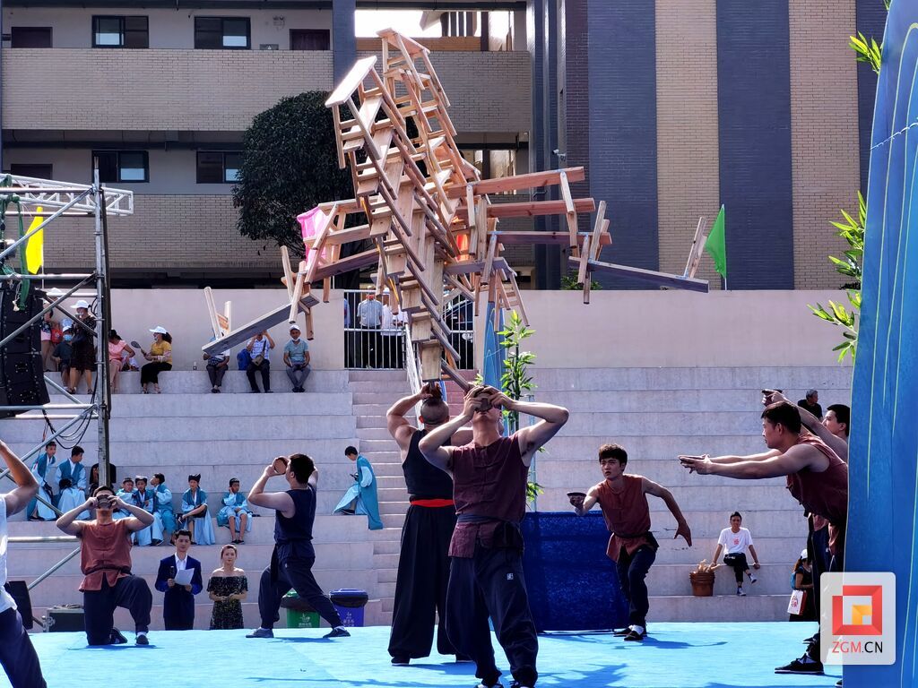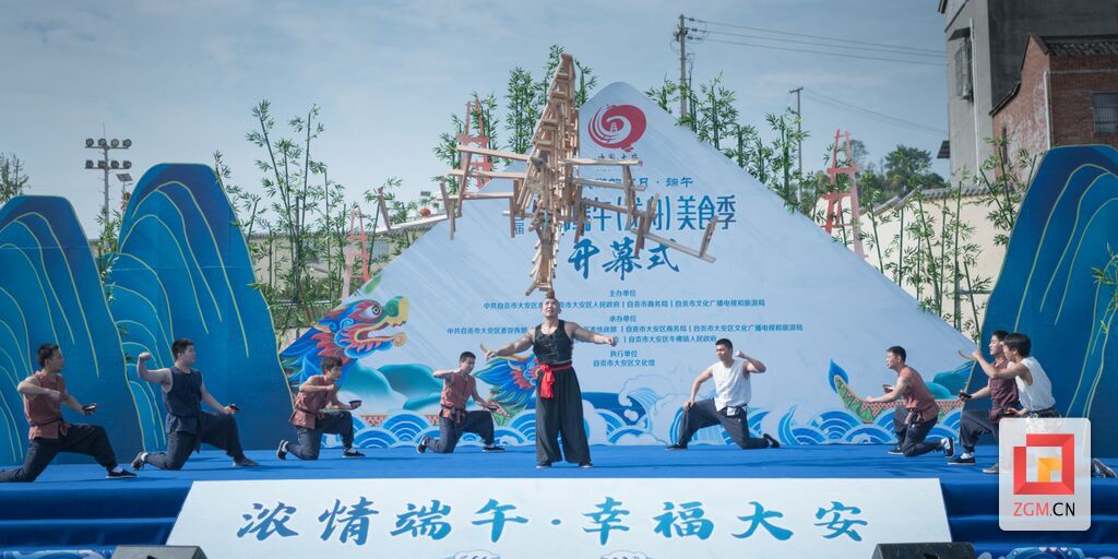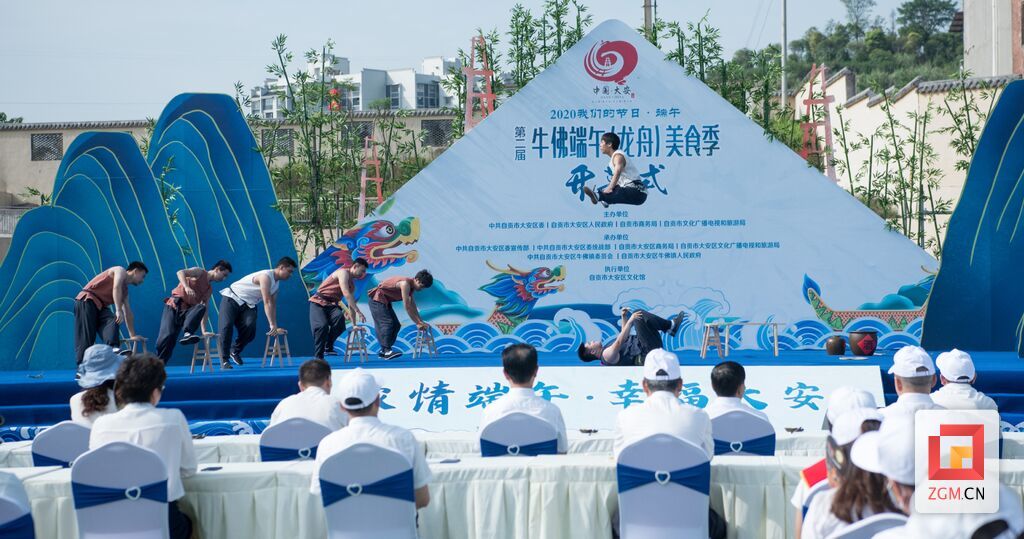 自贡网讯(记者 周姝)受大安区文化馆邀请,自贡市杂技团演艺公司新创节目《顶板凳—畅饮雄黄酒》参加了第二届牛佛端午(龙舟)美食季开幕式演出。