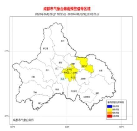 截至6月29日17时40分,四川有三座城市发布暴雨预警: