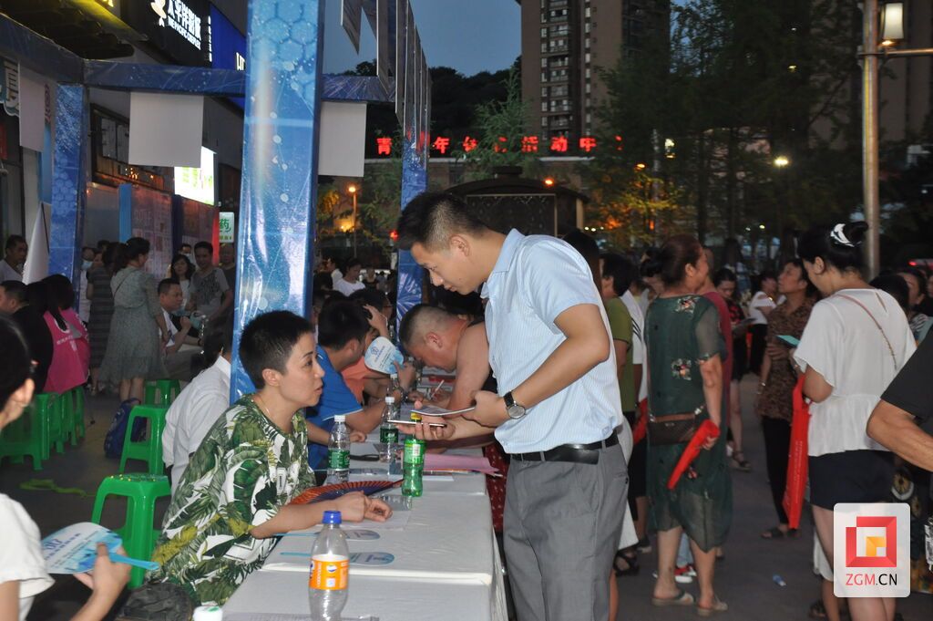 19时,华灯初上的檀木林梅西购物广场人头攒动,前来咨询、求职的市民络绎不绝。“赶快来,这边有招聘夜市,很多企业在招聘,很好找工作。”市民李女士在详细咨询后,与一家企业达成就业意向,还不忘给朋友推介。但朋友来不及赶到现场应聘,工作人员连忙上前指导李女士通过手机向朋友推介岗位信息,远程教她通过自贡公共招聘网提交应聘信息,实现网上求职。