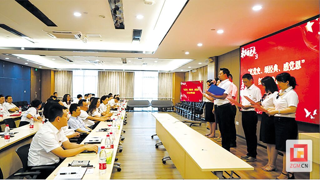 “七一”前夕,在自贡高投集团党委纪念建党99周年大会上,党员们以饱满的热情、昂扬的激情进行“忆党史、颂经典、感党恩”红色经典诵读。“七一”期间,自贡高投集团党委以聆听党课、慰问老党员、组建新党支部等多种形式,为党的生日献上诚挚的祝福。自贡网讯(张翠娜 摄)