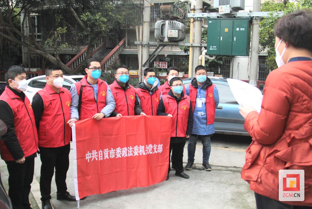 图:郜君(右一)和同事组建青年党员突击队,蹲守社区防控一线