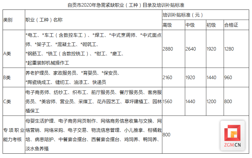 自贡网讯(记者 马莉莎)近日,记者从自贡市人力资源社会保障局获悉,为深入推进我市职业技能提升行动,大规模开展职业技能培训,根据我市产业发展和人力资源市场用工需求,该局制定了自贡市2020年急需紧缺职业(工种)目录及培训补贴标准。