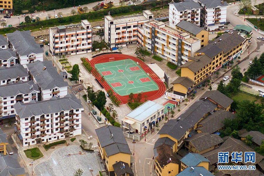 航拍中益小学的环形塑胶运动场。新华网 朱清 摄