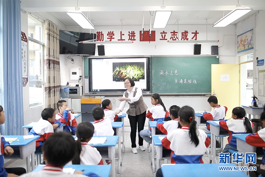 马影翠在课堂上和学生们进行互动。新华网 发