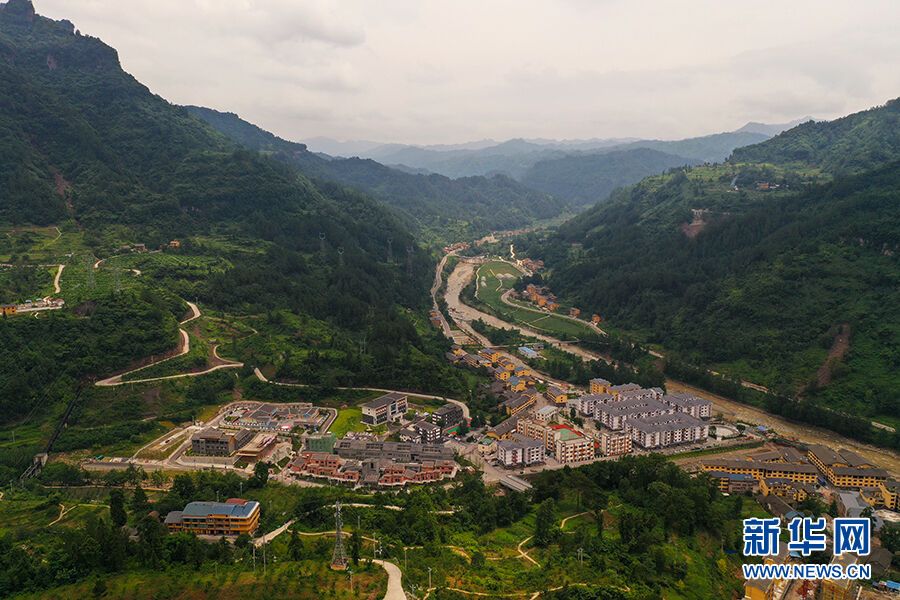 图为今年7月重庆市石柱县中益乡航拍图片,场镇面貌焕然一新。