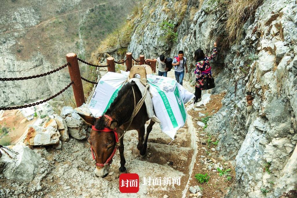 2016年,古路村村民从骡马道上山。