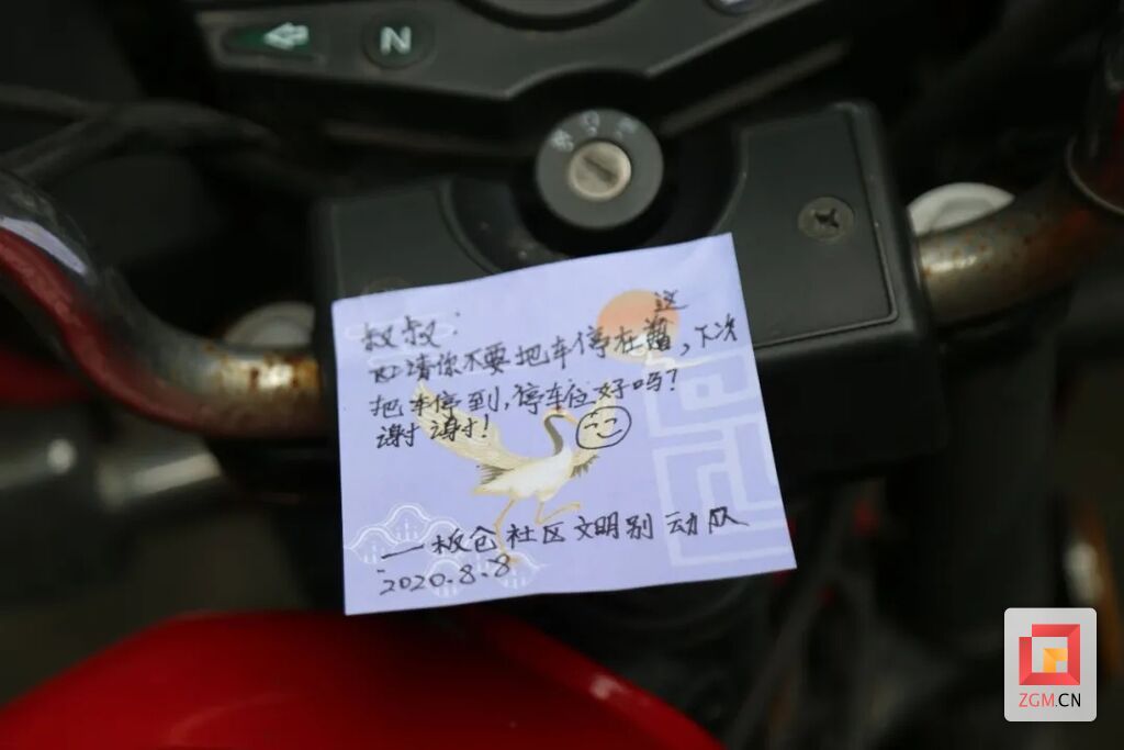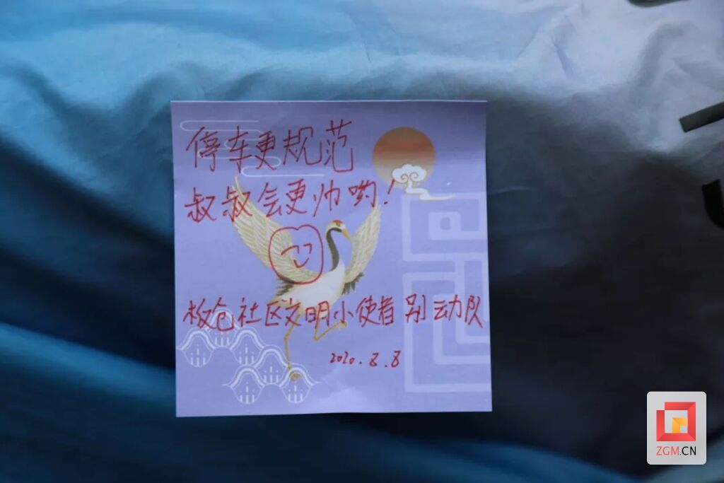 “叔叔,请你下次把车停在车位好吗?”“停车更规范,叔叔更帅哟!”……8月8日,在沿滩区古盐新村、金帝佳苑、安居苑小区,一些乱停乱放车主均收到了一张手写的“温馨提示卡”,倡导他们以后能文明规范停车。