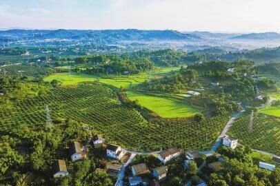 广安市广安区积极做大做强龙安柚产业,成功创建龙安柚中国特色农产品优势区。图为8月5日拍摄的龙安乡革新村龙安柚产业基地。 张国盛 摄