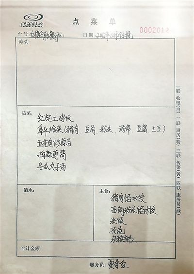 习近平总书记2012年考察河北省阜平县时的晚餐菜单(复制件)(图片来自《中国纪检监察报》)