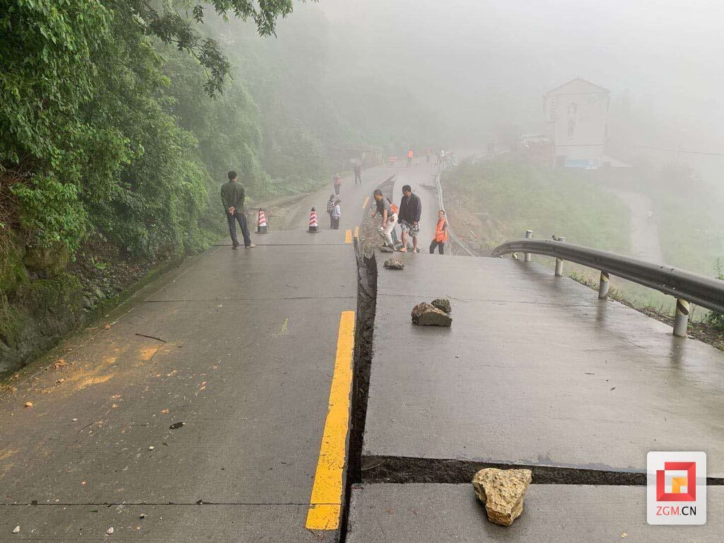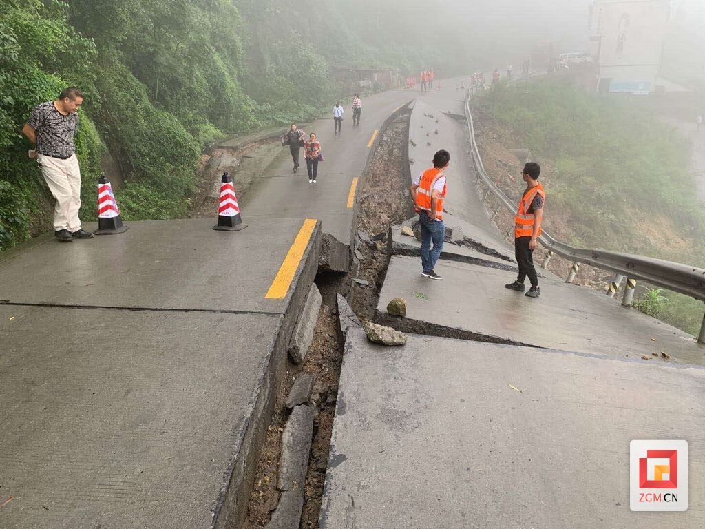 自贡网讯(记者 叶艳)8月17日一早,荣县交警发布路况信息,称由于持续强降雨,井荣路荣县高石梯往双古方向塌方,路面断裂,道路交通中断。目前,该路段实行双向封闭管理。
