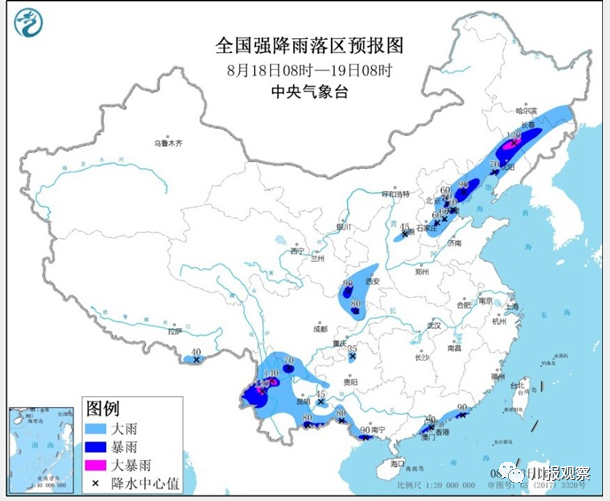 预计,8月18日08时至19日08时,四川盆地北部、川西高原南部等地的部分地区有大到暴雨。上述部分地区伴有短时强降水(最大小时降雨量30~50毫米,局地可超过60毫米),局地有雷暴大风等强对流天气。