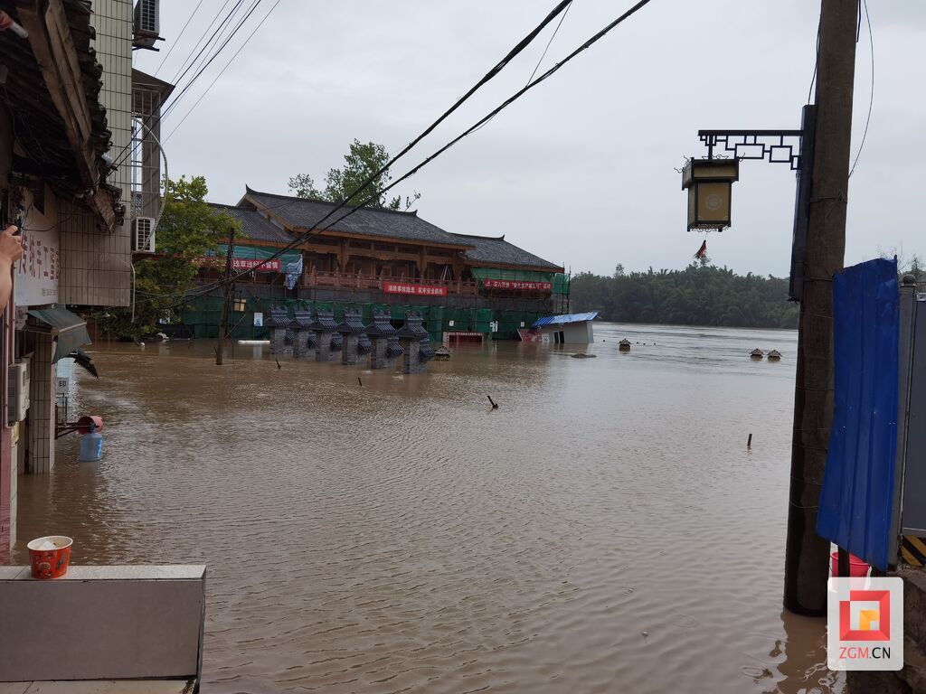自贡网讯(记者 郑鑫玉)8月18日8时30分,狮市镇水位278.9米,超警戒水位5.4米,水位还在持续上涨中,洪峰预计9时左右到达。沿江所有群众、物资已全部撤离完毕,警戒值守力量正在现场维持秩序,疏散围观群众,工作人员紧密观测水位中。